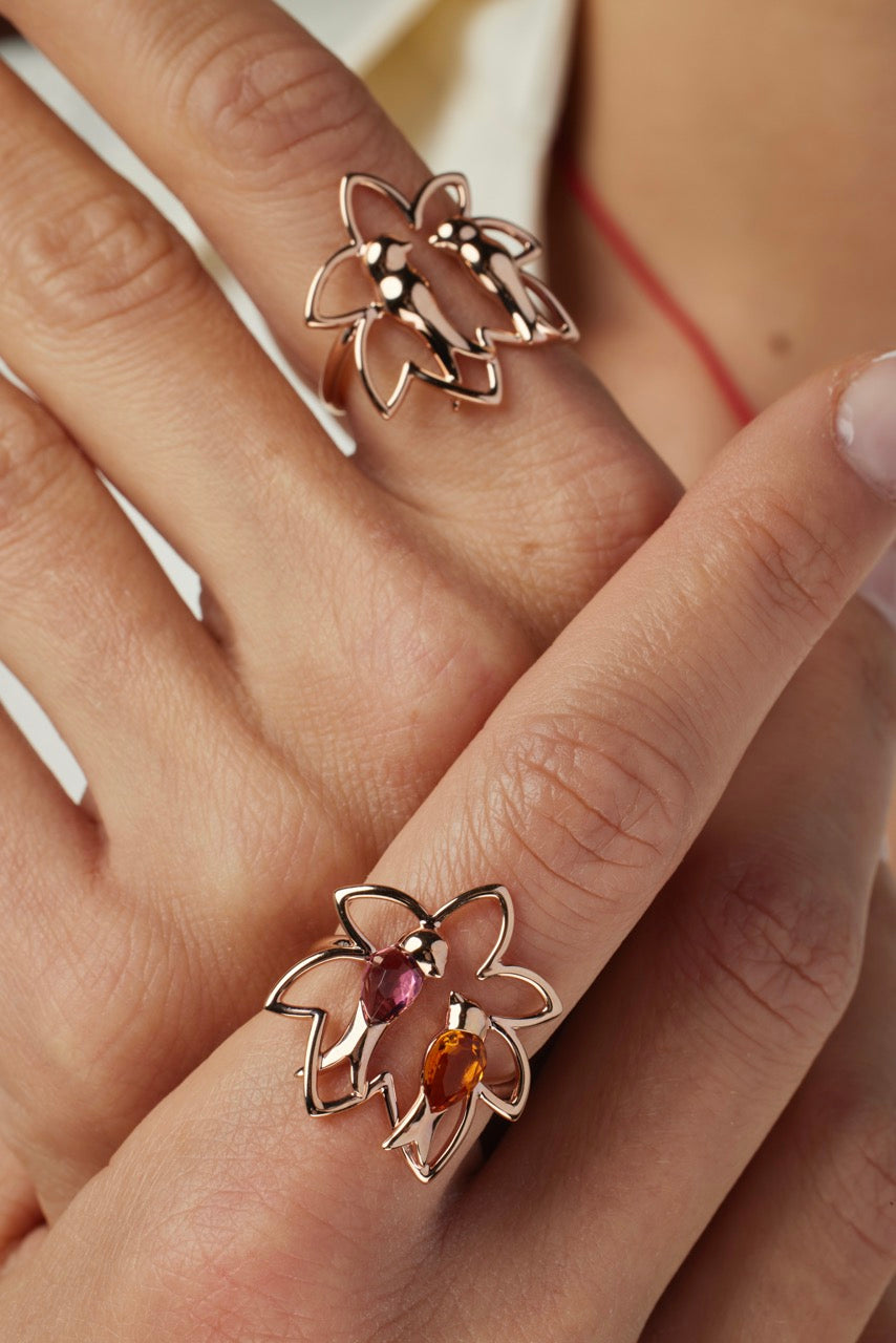 The Inséparables Tropical ring in rose gold set with citrine and tourmaline is a fine and delicate creation to wear every day.