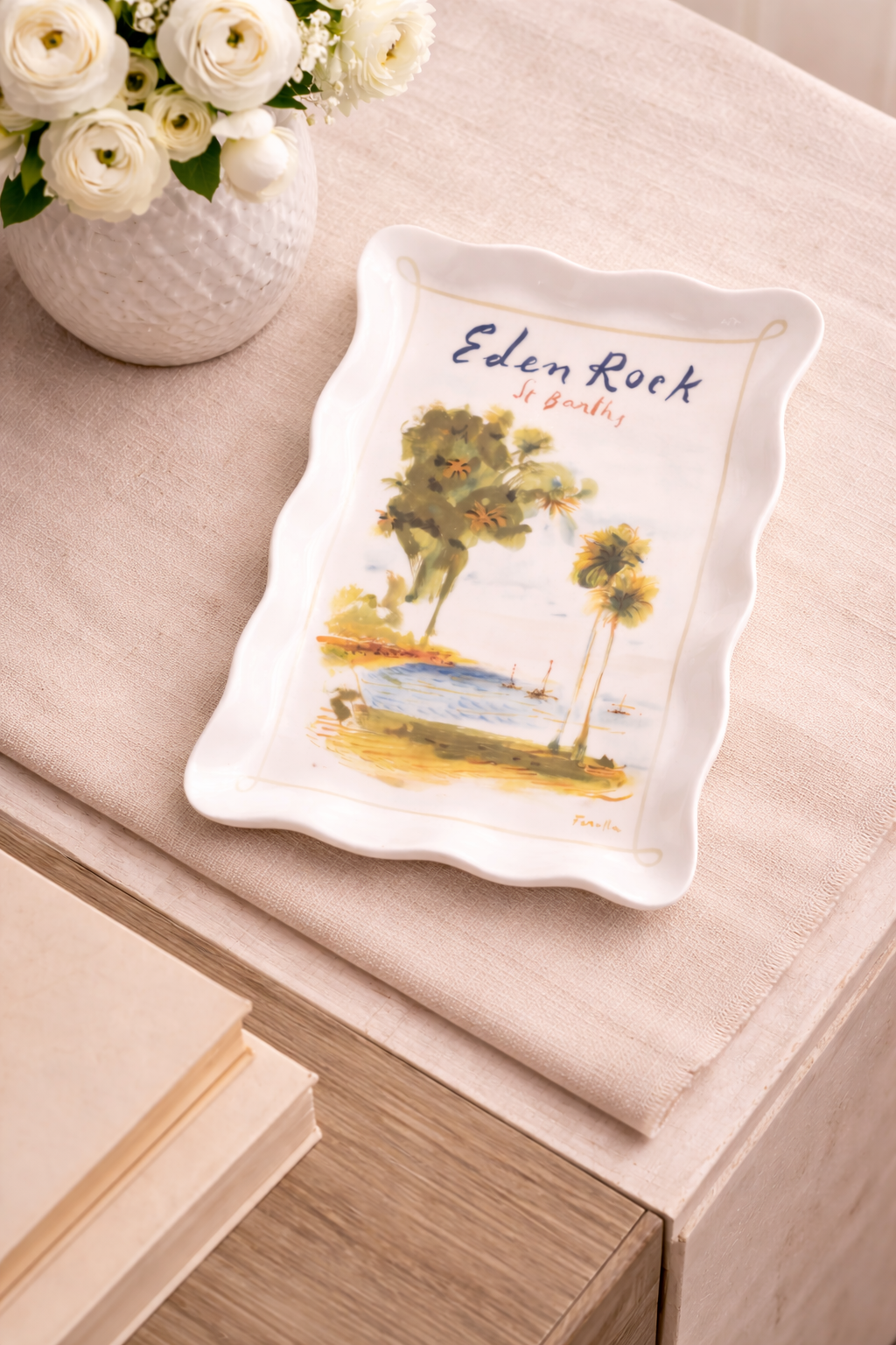 A piece of functional art for the home. This ceramic glass tray, inspired by Eden Rock’s vibrant “Firework” motif, is perfect for serving or displaying with style.